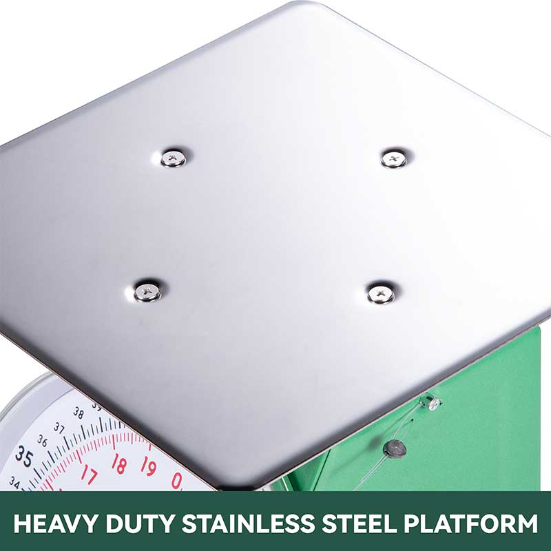 【Ideal for Indoors & Outdoors】This heavy duty mechanical scale is suitable for the delicatessen, restaurant, supermarket, grocery store, pub or concession stand. It can serve as a receiving scale for the food industry, a measuring scale for delivery companies, as well as weighing farmhouse items such as grain, feed, meat or produce.