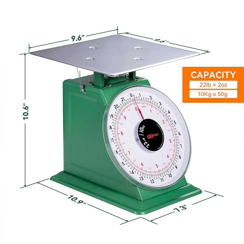 【Capacity】The mechanical portion scale can weigh up to 22 lb in 2 oz increments or 10 kg in 50 g increments.